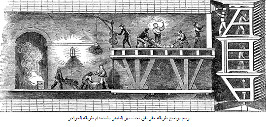 لكن مثل هذة الطرق المستخدمة في الحفر لم تكن قد وُجِدَت عند بداية حفر أول نفق في لندن، واضطروا للحفر يدويًا، وكانت هذة الطريقة بطيئة وخطيرة، وتم استخدام حواجز قابلة للحركة وهي عبارة عن أسقف لحماية العمال أثناء الحفر.