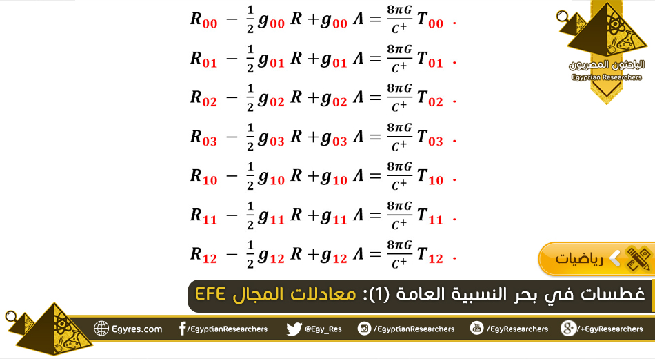 رياضياترياضيات النسبية العامةفيزياء«غطسات في بحر النسبية العامة» (1) معادلات المجال الجذبي لاينشتاين EFE أحمد حسينيفبراير 20, 2016