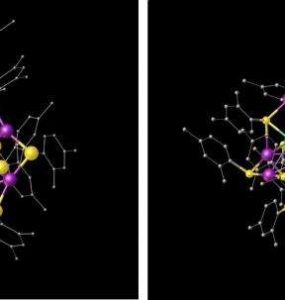جسيمات الفضة الدقيقة الذهبيه تشبه الذهب وتسلك سلوكه توصل العلماء أن تركيب «التجمعات الدقيقة-nanocluster » لمركب الفضة تكاد تُطابق التجمعات الدقيقة لمركب الذهب، لدى التجمعات الدقيقة لمركب الفضة من الخارج لون أصفر...