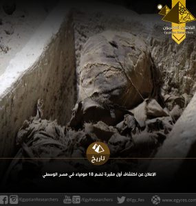 الاعلان عن اكتشاف أول مقبرة تضم 18 مومياء في مصر الوسطي اكتشف علماء الآثار بجامعة القاهرة سراديب موتي(catacombss) تضم ثمانية عشر مومياء غير ملكية قي محافظة المنيا (جنوب القاهرة)، وقد أعلنت ذلك وزارة الآثار يوم السبت...